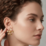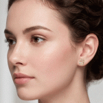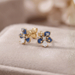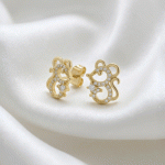 Aretes en forma de niña con varios circones bañado en oro italiano de 24KT con oro blanco