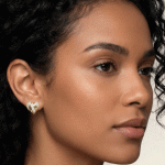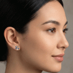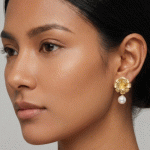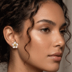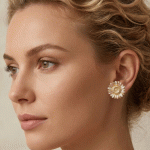 Aretes redondos con varios circones & Circón grande en medio bañado en oro italiano de 24KT con oro blanco