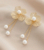 Aretes Colgantes Flor Filigrana en Baño de Oro y Perlas Naturales