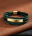 Pulsera Trenzada de Cuero Verde Oscuro y Acero Dorado para Hombre