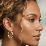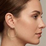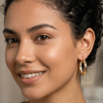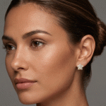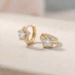 Aretes redondos con varios circones & Circón grande en medio bañado en oro italiano de 24KT con oro blanco