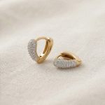 Aretes en forma de pez con varios circones bañado en oro italiano de 24KT con oro blanco