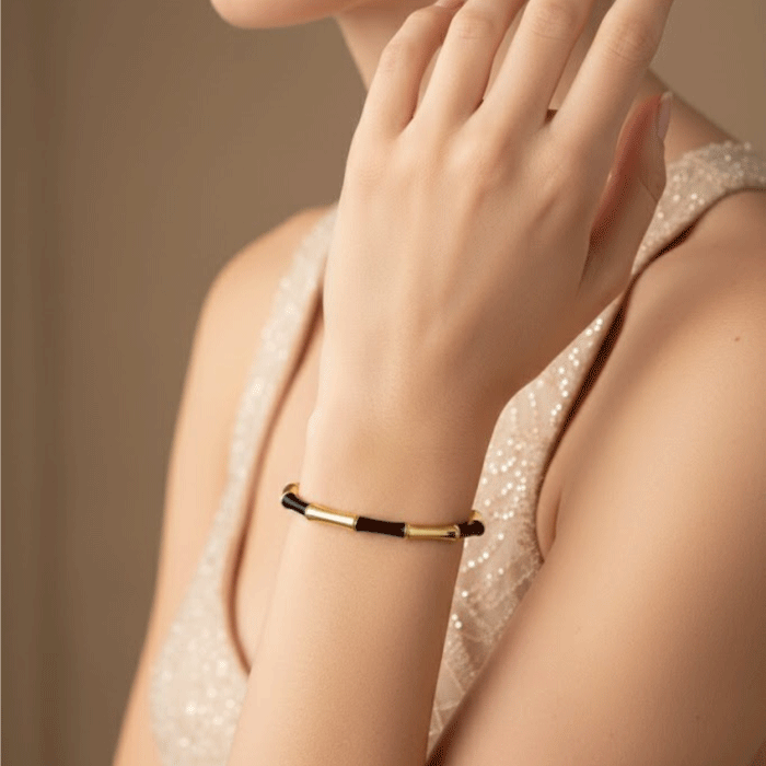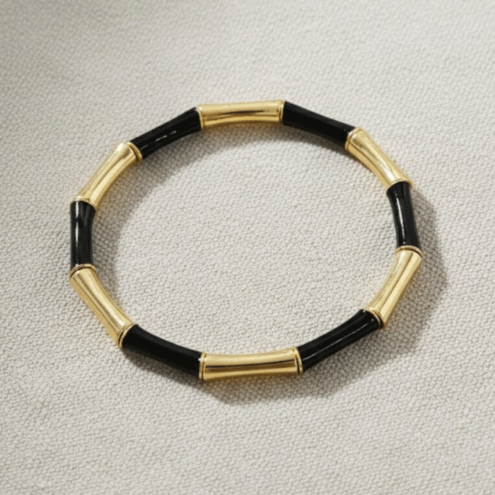 Pulsera Elástica Bañada en Oro con Detalles en Negro – Estilo Moderno y Minimalista