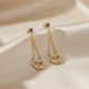Aretes Ortopédicos en Forma de Tijeras con Piedras Rojas Bañados en Oro para Bebés