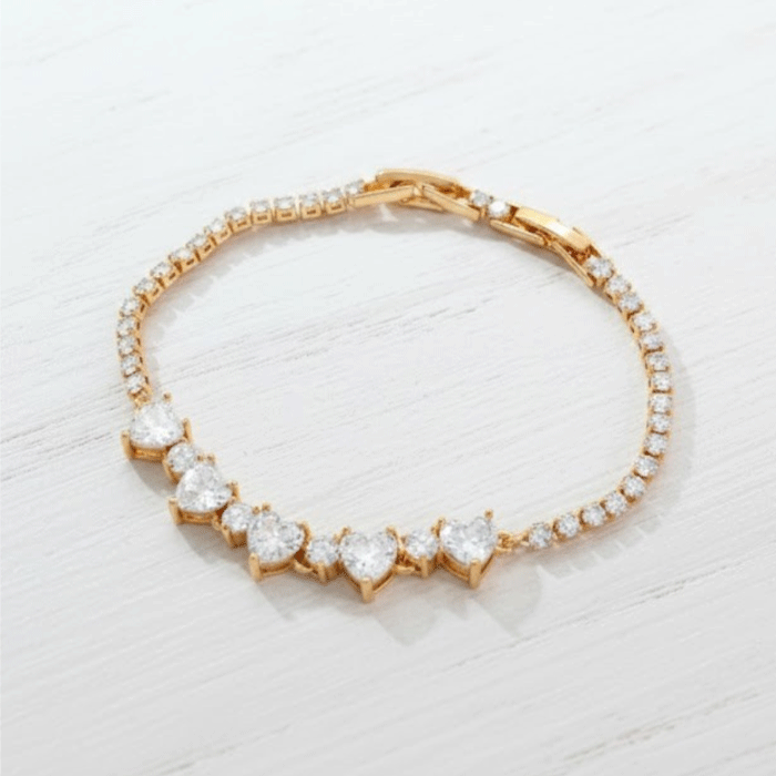 Pulsera Bañada en Oro con Circones en Forma de Corazón – Brillo y Elegancia Premium