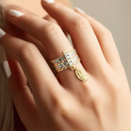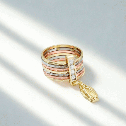 Anillo Bañado en 3 Oros con Dije de la Virgen de Guadalupe
