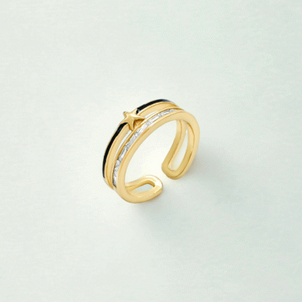 Anillo ajustable bañado en oro con diseño de estrella y detalles brillantes, perfecto para un look moderno y elegante.