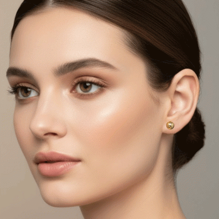 Aretes topos bañados en oro con diseño esférico. Brillo atemporal y elegancia minimalista que combina con todo.