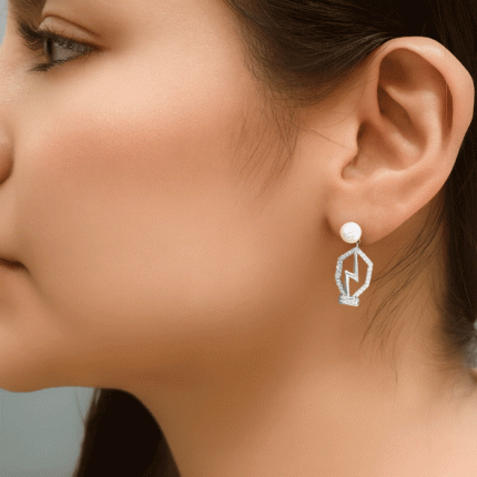 Aretes Bañados en Plata con Perla y Detalle Geométrico
