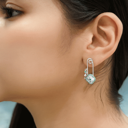Aretes florales bañados en plata con incrustaciones verdes, diseño elegante y moderno para un look fresco y sofisticado.