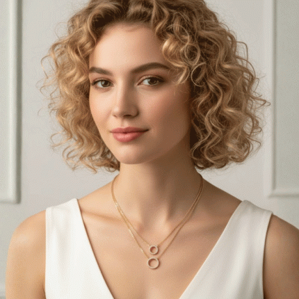 Elegante cadena bañada en oro con un adorable dije de osito sosteniendo un corazón con una circón brillante. Cadena tipo trenzado (torsal). El detalle perfecto para un look dulce y sofisticado.