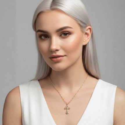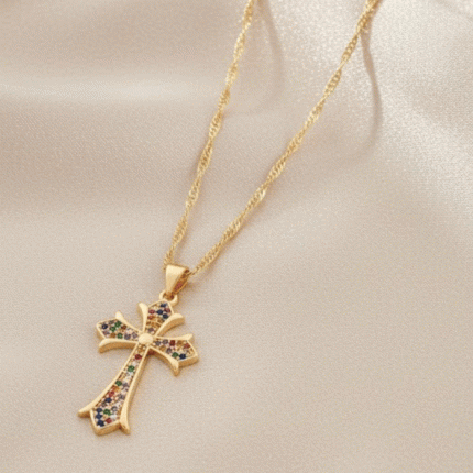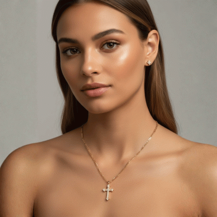 Cadena Bañada en Oro con Dije de Cruz de Circones Engastadas