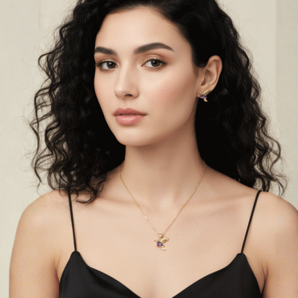 Juego de cadena, dije y aretes bañados en oro con diseño de colibrí y piedra. Belleza, libertad y brillo en una sola joya.