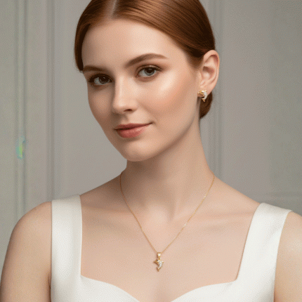 Juego de Collar y Aretes Brillo Celestial Bañado en Plata