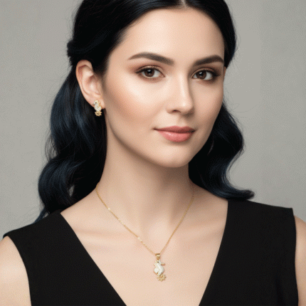 Juego de Cadena, Dije y Aretes Caballito de Mar Bañado en Oro