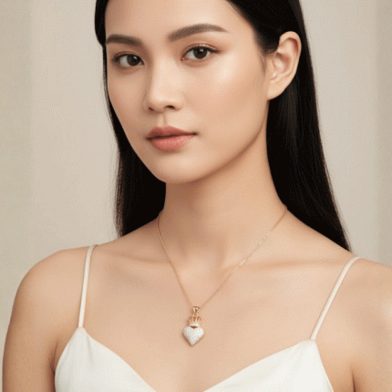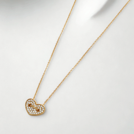 Collar bañando en oro con dije de corazón brillante. Una joya delicada que expresa amor, elegancia y luz.