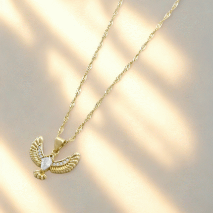 Cadena bañada en oro con dije de paloma. Un símbolo de paz, esperanza y libertad con un toque de elegancia.