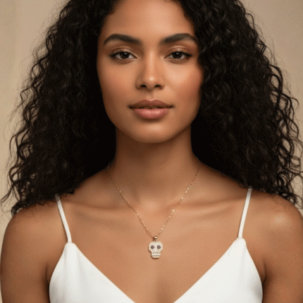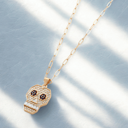 Cadena bañada en oro con dije de calavera adornada con circones. Una joya audaz que combina elegancia y actitud.
