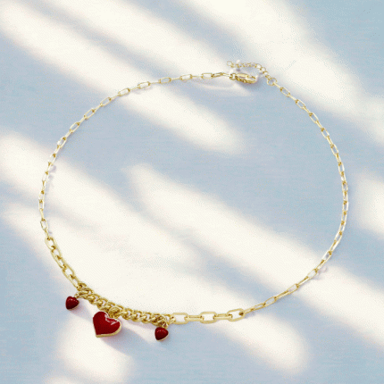 Collar bañado en oro con corazones rojos esmaltados, un accesorio moderno y romántico para realzar tu estilo.