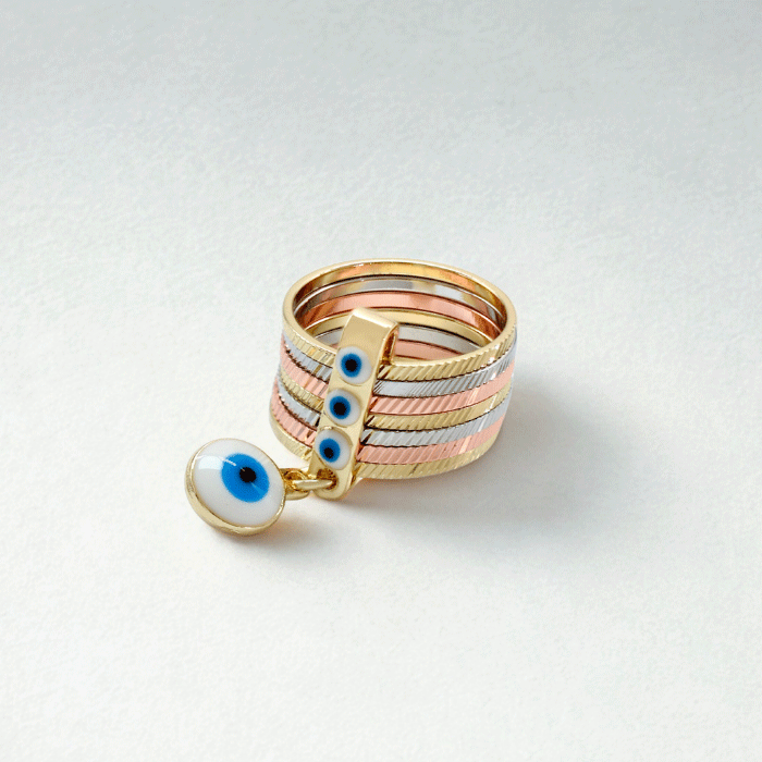 Anillo en 3 Oros con Ojo Turco «7 Tratados». Protección, tradición y estilo en una joya única bañada en oro.