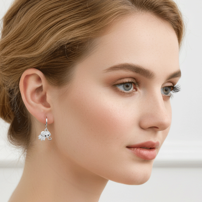 Elegancia que atrae lo bueno. Nuestros aretes de elefante son la combinación perfecta entre un diseño divertido y una ejecución sofisticada. Cada elefante está recubierto por una constelación de pequeñas circonias que capturan la luz desde cualquier ángulo, creando un efecto de «diamante» deslumbrante.