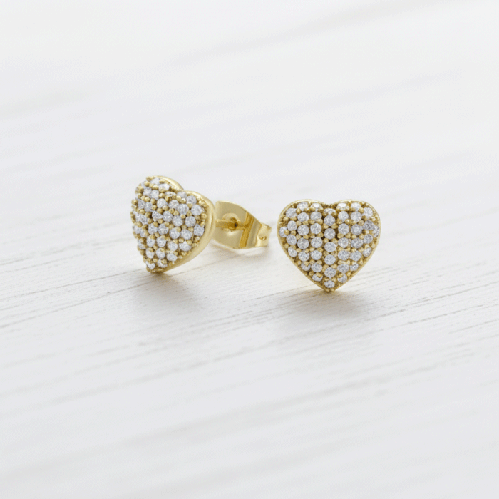 Aretes de Corazón Radiante con Engaste Pavé y Lujoso Baño de Oro