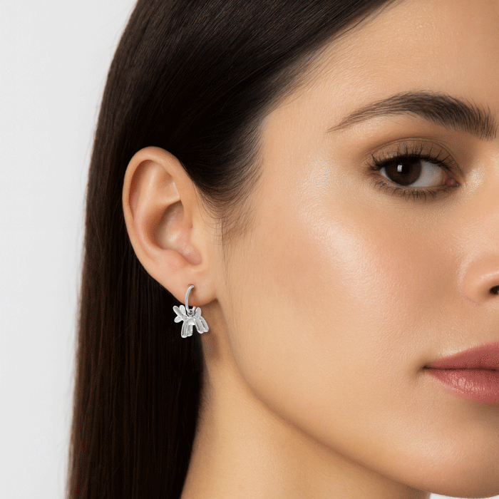 Aretes en forma de perrito globo bañados en plata, divertidos, modernos y llenos de estilo.