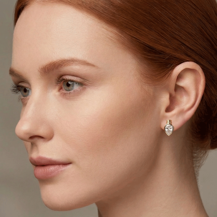 Destacando un cristal central en forma de gota que captura la luz desde todos los ángulos, su diseño único combina la elegancia clásica con un toque moderno y estructurado. Son la pieza perfecta para iluminar tu rostro con discreción y lujo.
