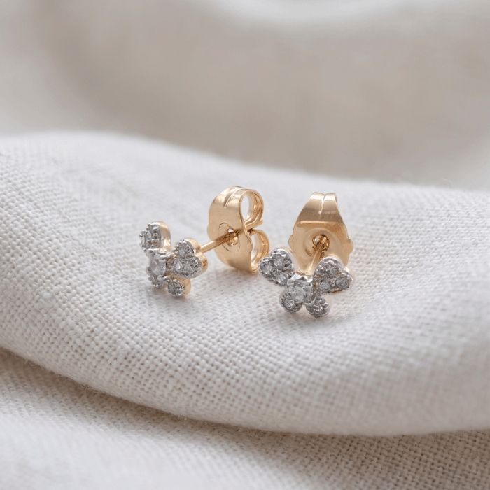 Aretes de Mariposa en Oro Italiano Bitono con Incrustaciones de Circones