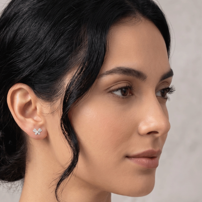 Eleva tu estilo diario con la elegancia atemporal del diseño italiano. Estos aretes presentan una silueta de mariposa de tres pétalos, destacando por su exclusivo acabado bitono que fusiona la calidez del oro con la pureza del oro blanco en la zona frontal.