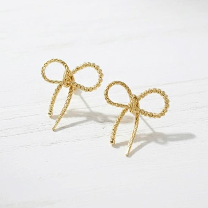 Añade un toque tierno, elegante y femenino a tu estilo con nuestros aretes bañados en oro con diseño de lazo, creados para mujeres que aman los detalles sutiles pero con mucho encanto.