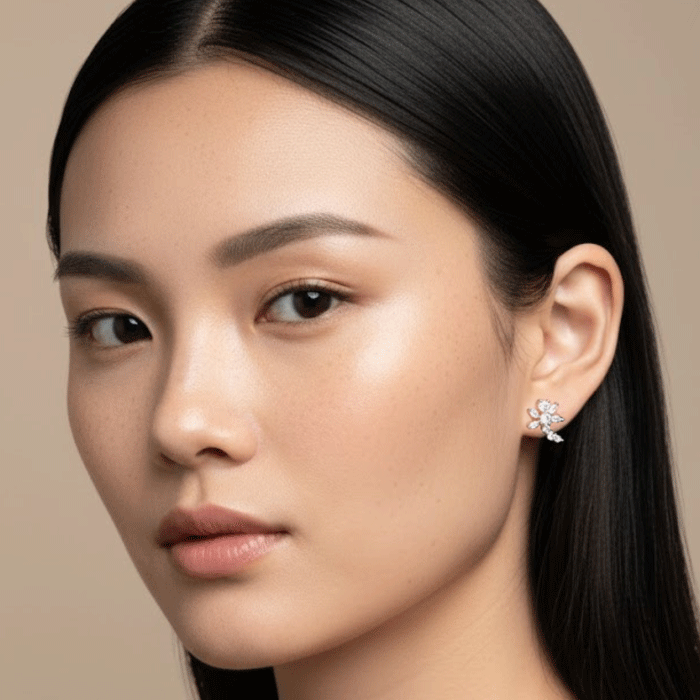 Aretes Libélula Brillante en Oro Italiano 24KT con Baño de Oro Blanco