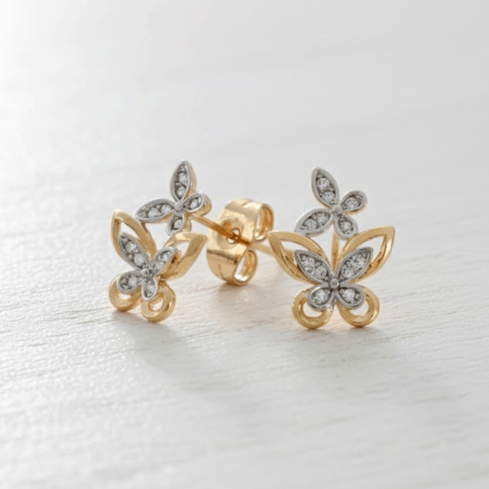 Aretes Mariposa Doble Bañados en Oro Italiano 24K con Detalles en Oro Blanco