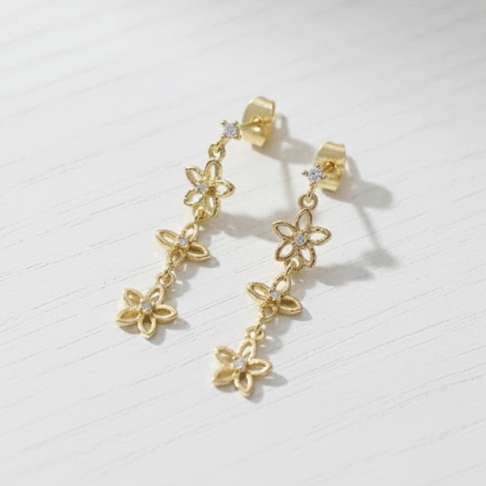 Aretes Medianos Bañados en Oro con Flores Delicadas y Circones