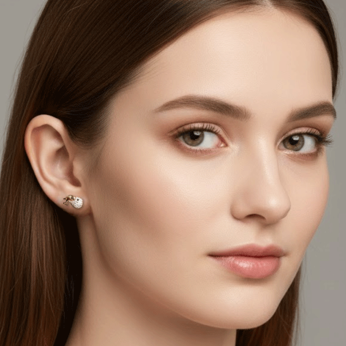 Estos encantadores aretes pequeños en forma de ballena bañados en oro combinan ternura y elegancia en una sola pieza. Su cuerpo está cubierto de micro circones que aportan un brillo espectacular, mientras el diseño curvo y delicado de la ballena añade un toque juvenil y lleno de personalidad.