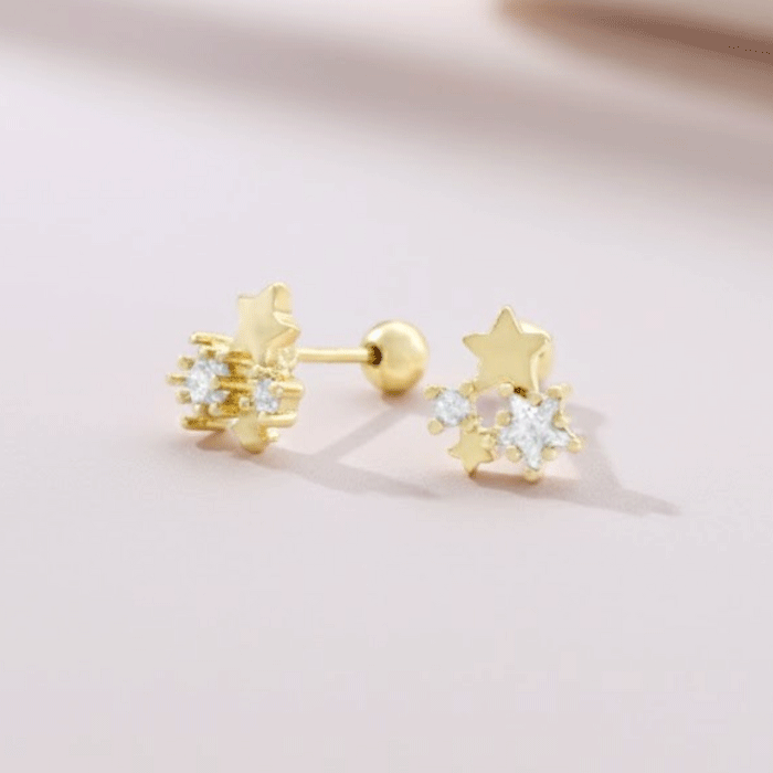 Aretes Ortopédicos en Forma de Estrellas con Circones Bañados en Oro para Bebés