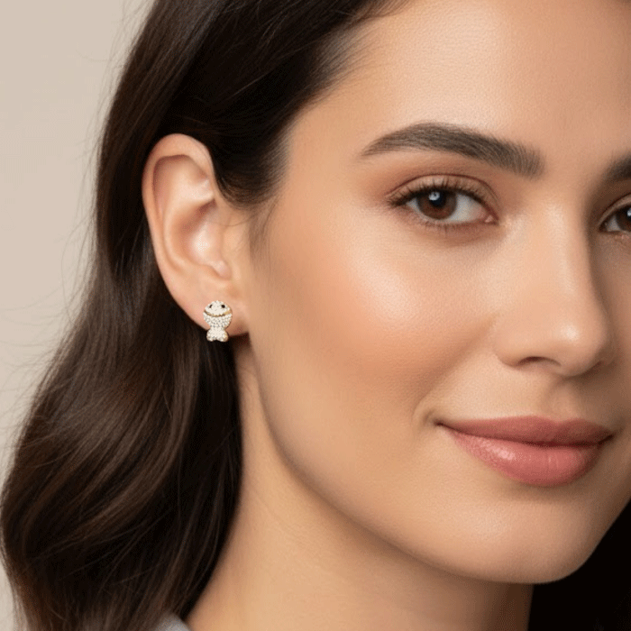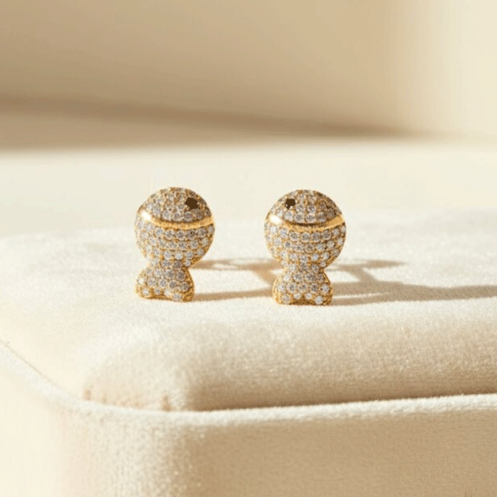 Los Aretes Topos Medianos con Circones Bañados en Oro de 1.2cm de alto son una pieza que combina lujo y estilo moderno. Su diseño redondeado con incrustaciones de micro circones ofrece un brillo deslumbrante que captura la luz con cada movimiento.