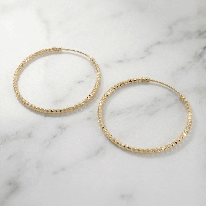 Argollas Bañadas en Oro con Textura Diamantada – Diseño Clásico Elegante