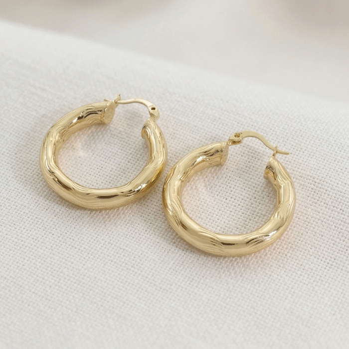 Argollas de Oro con Textura Orgánica «Aura» – Baño de Oro