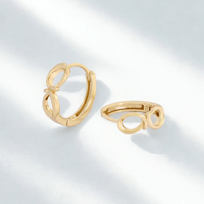 Argollas Huggies bañadas en oro con diseño entrelazado, modernas y cómodas para cualquier ocasión.