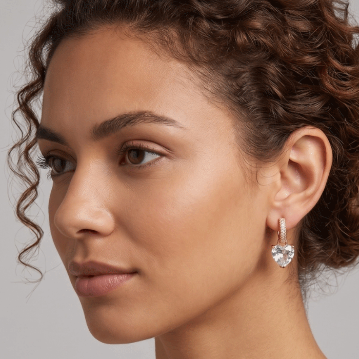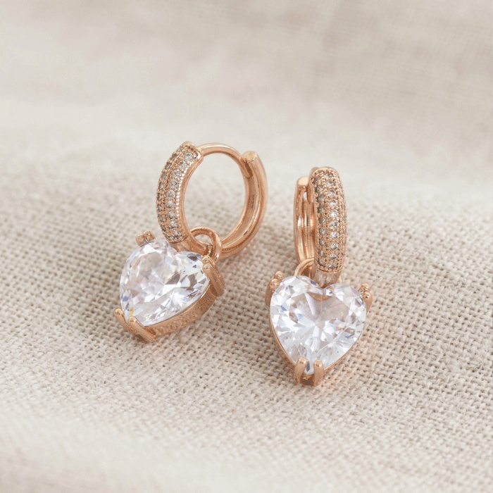 Eleva tu estilo con estas sofisticadas argollas tipo huggies. Diseñadas con un delicado pavé de brillantes y un dije colgante de circonia en forma de corazón, estas piezas combinan el romanticismo clásico con el lujo moderno.