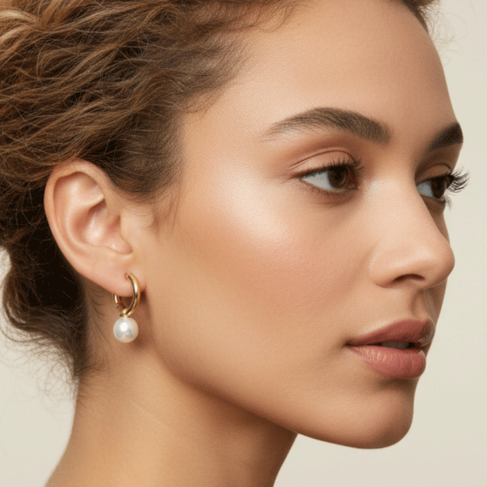 Sofisticación en cada detalle. Nuestras argollas de 2.6cm de alto con perla son la pieza esencial que no puede faltar en tu joyero. Diseñadas para ofrecer un «lujo silencioso», estas joyas aportan una distinción inmediata tanto a looks casuales como a atuendos más formales.