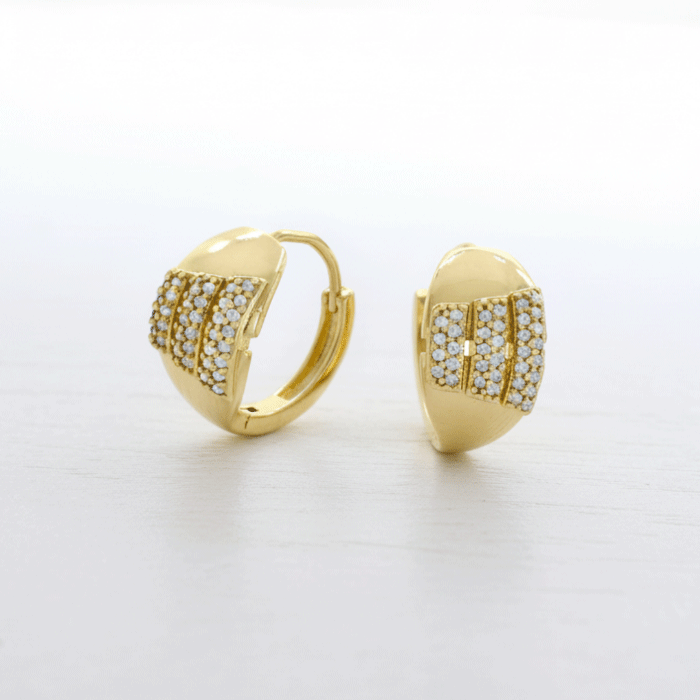 Argollas Huggies bañadas en oro con doble fila de circones. Brillo moderno y elegancia perfecta para cualquier ocasión.