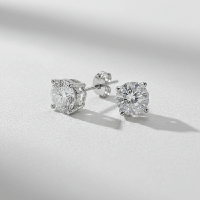 Broqueles de Circón Corte Brillante en Baño de Plata – Elegancia Atemporal