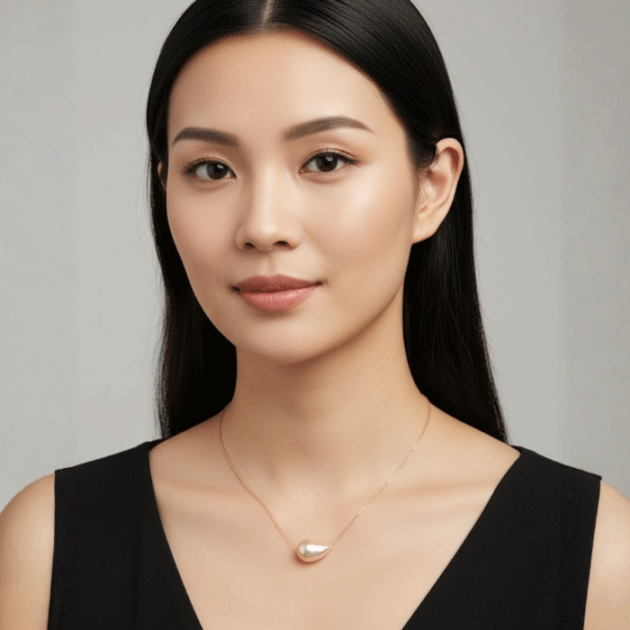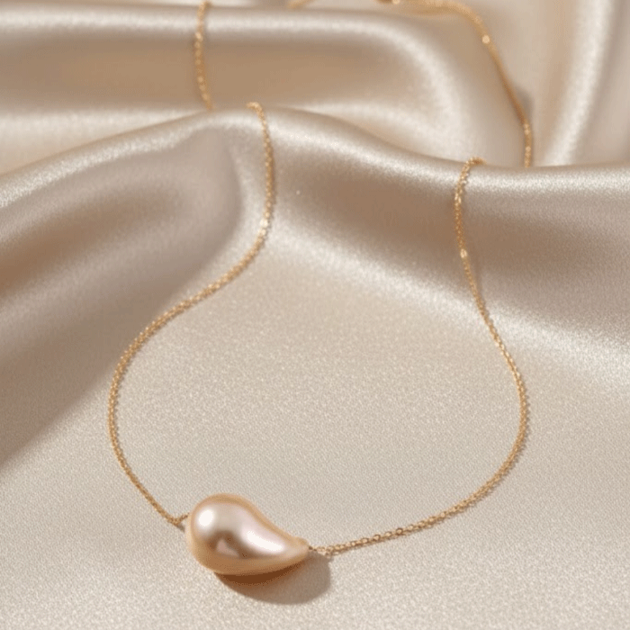 Collar Bañado en Oro con Perla Barroca Estilo Gota
