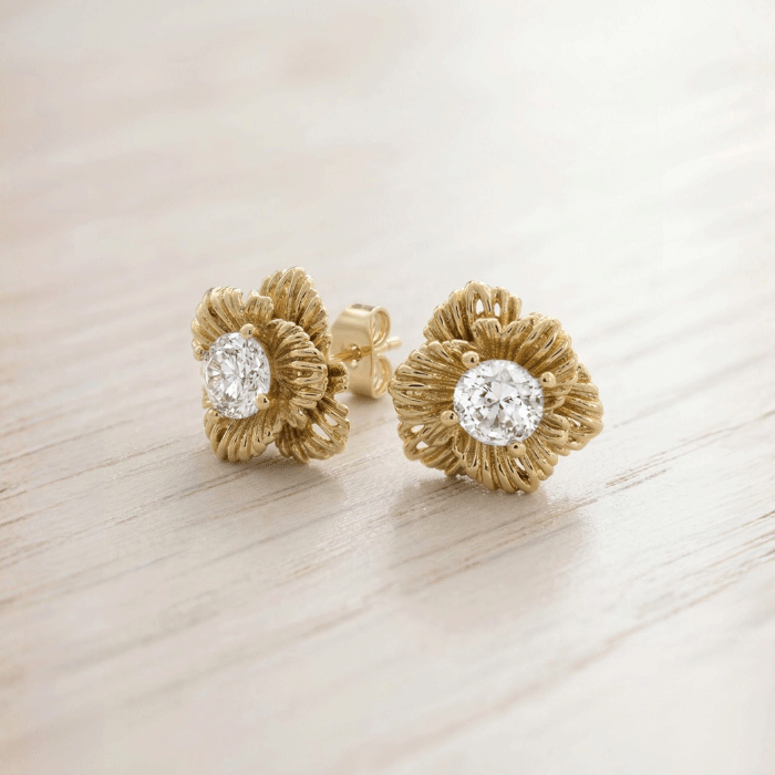 Pendientes de Botón Bañados en Oro con Circonitas Cúbicas y Diseño de Flor Intrincada