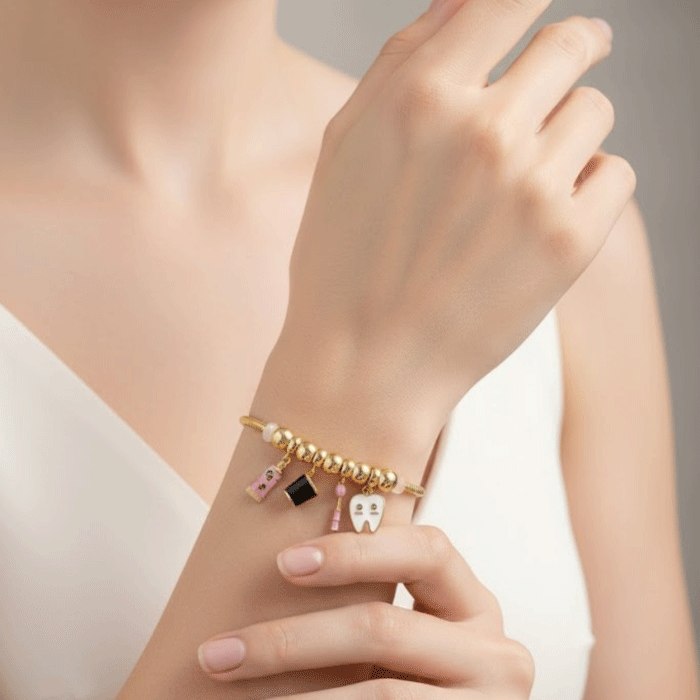 Pulsera Bañada en Oro con Dijes Odontológicos – Diseño Tierno y Profesional
