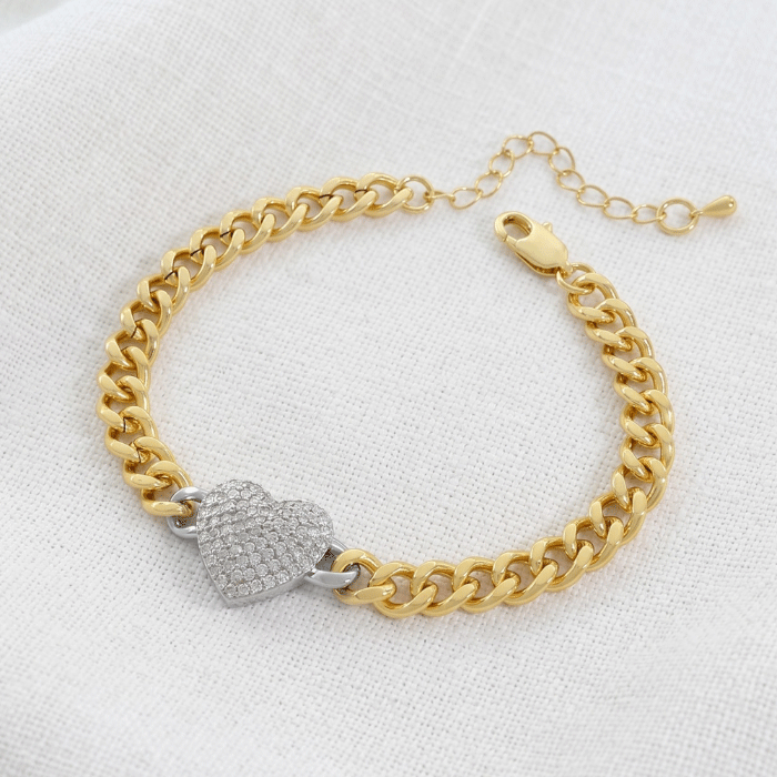 Pulsera de Eslabones en Baño de Oro con Corazón en Circones