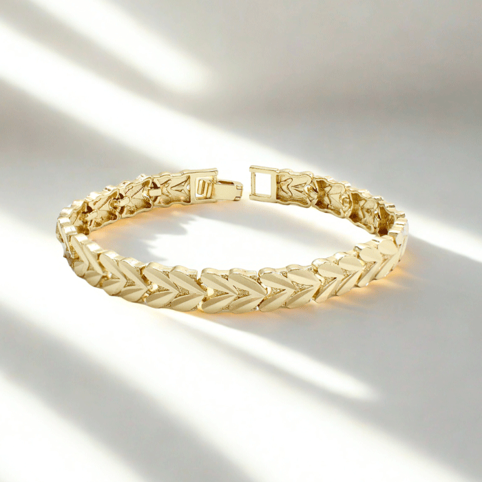Pulsera bañada en oro con eslabones en forma de flecha. Un diseño moderno que refleja fuerza, elegancia y movimiento.