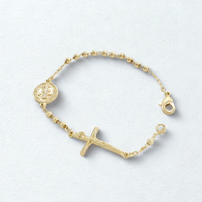 Pulsera San Benito con Crucifijo Bañada en Oro